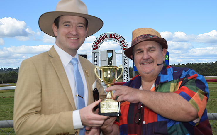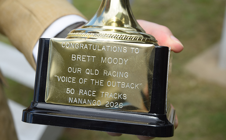 Brett was presented with a special trophy by the Nanango Race Club marking the 50th track where he had been behind the microphone.