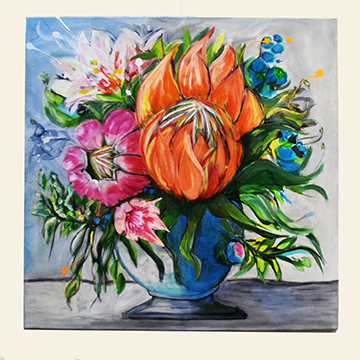 Judge Pat Van Kempen praised the work, “I Can Buy Myself Flowers”, for its use of colours “especially the tones and hues of green, and movement”.