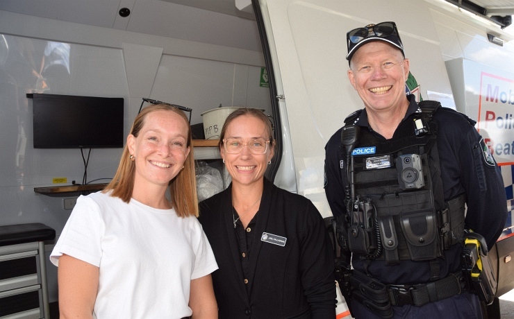 Queensland Police’s “mobile police station on wheels” set up in Kingaroy on Tuesday morning as part of a local “Coffee With A Cop” initiative at Kingaroy Mall.