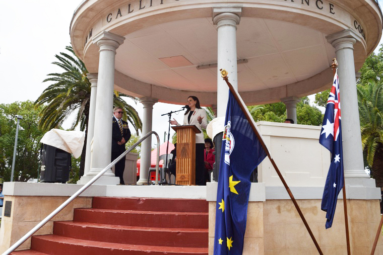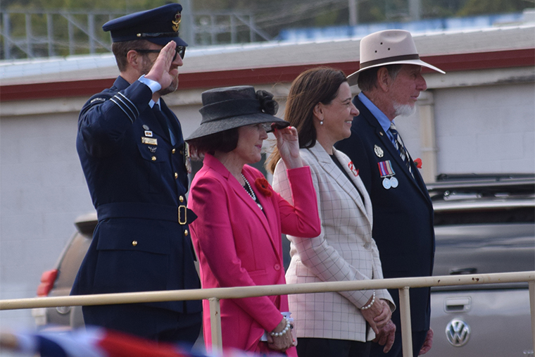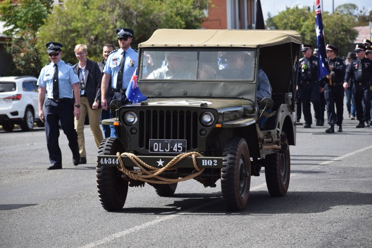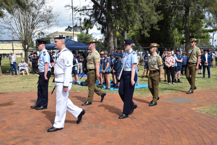 Guest speaker, Wing Commander Chris McInnes, took the parade salute from the official dais in Haly Street accompanied by local MP Attorney-General Deb Frecklington and South Burnett Mayor Kathy Duff.
