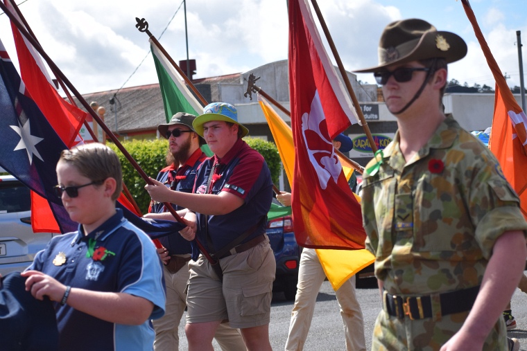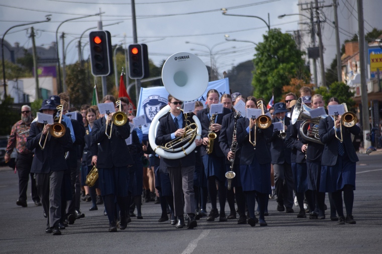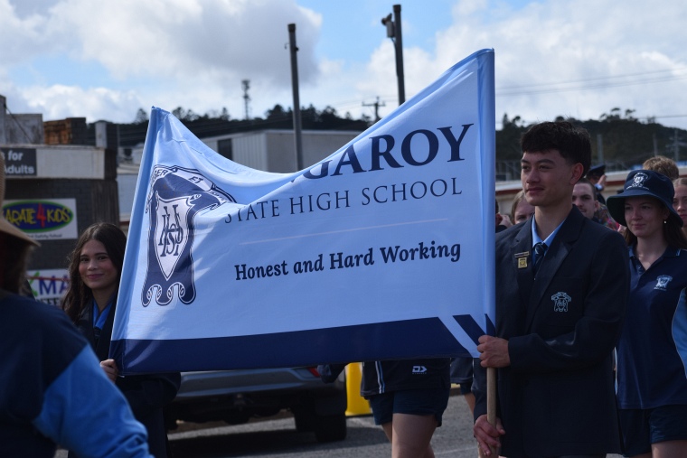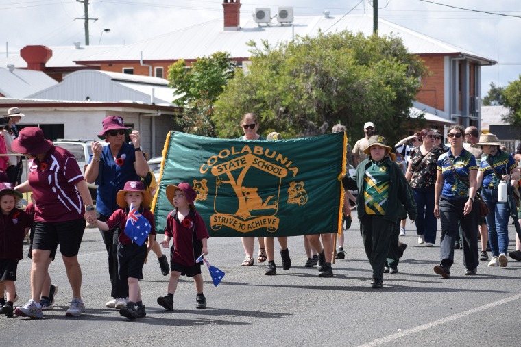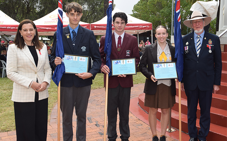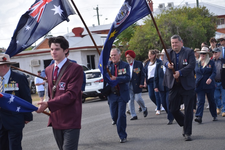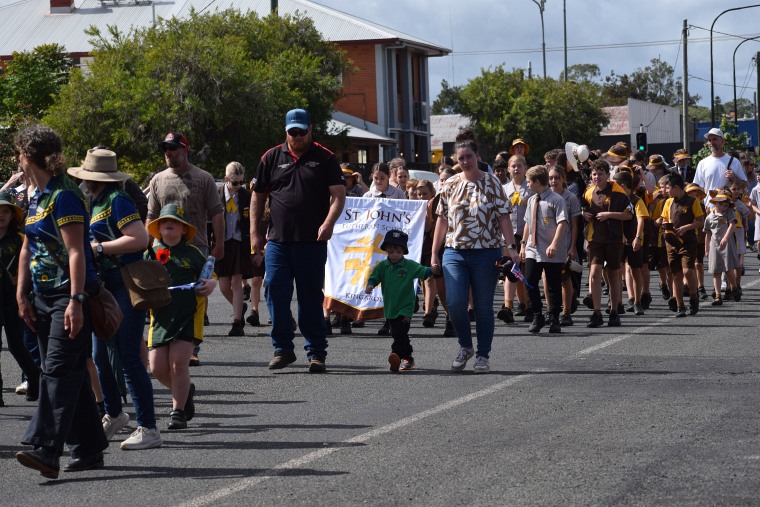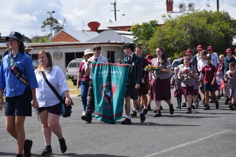 Three high school students, Charlie Sparks (Kingaroy State High School), Cornelius Curtain (St Mary’s Catholic College) and Grace Bjelke-Petersen (St John’s Lutheran School), carried the flags at the head of the march.