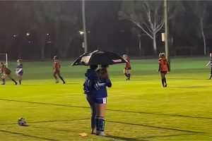A little rain – well, actually a lot of rain – couldn’t stop the annual President’s Cup women’s soccer game being played.